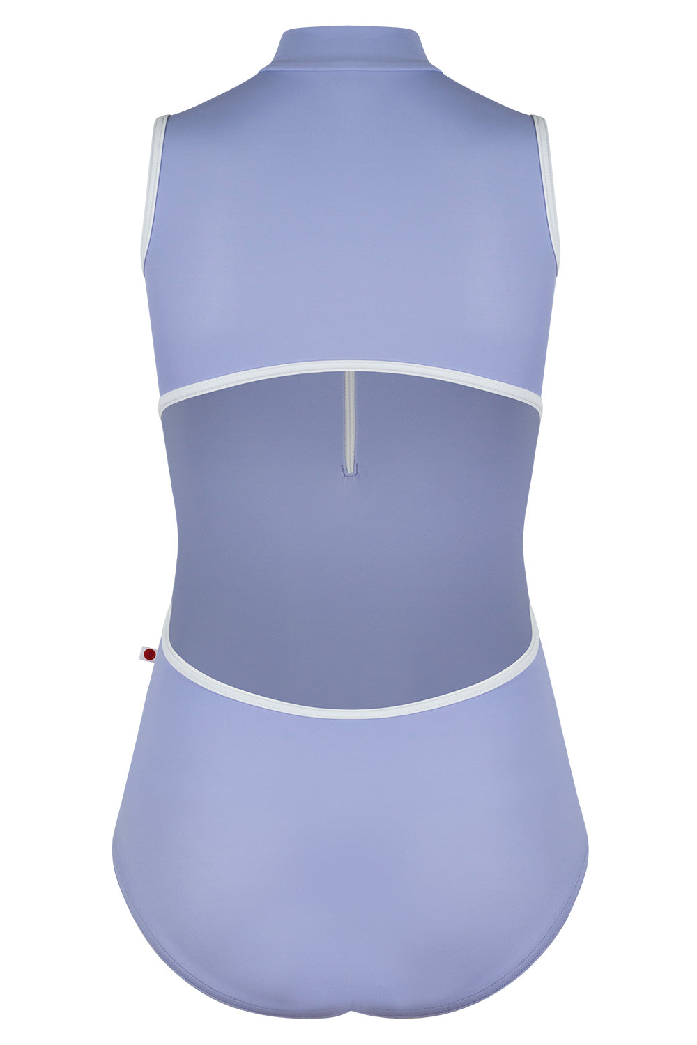 The CHARLOTTE features a flattering mock neck, zip front, and dramatic back cutout. This style is also available with mesh. When ordering with sleeves, we recommend sizing up for added comfort. The zipper is not removable. To choose a zipper color different from the body color, select yes for 'Zipper.'