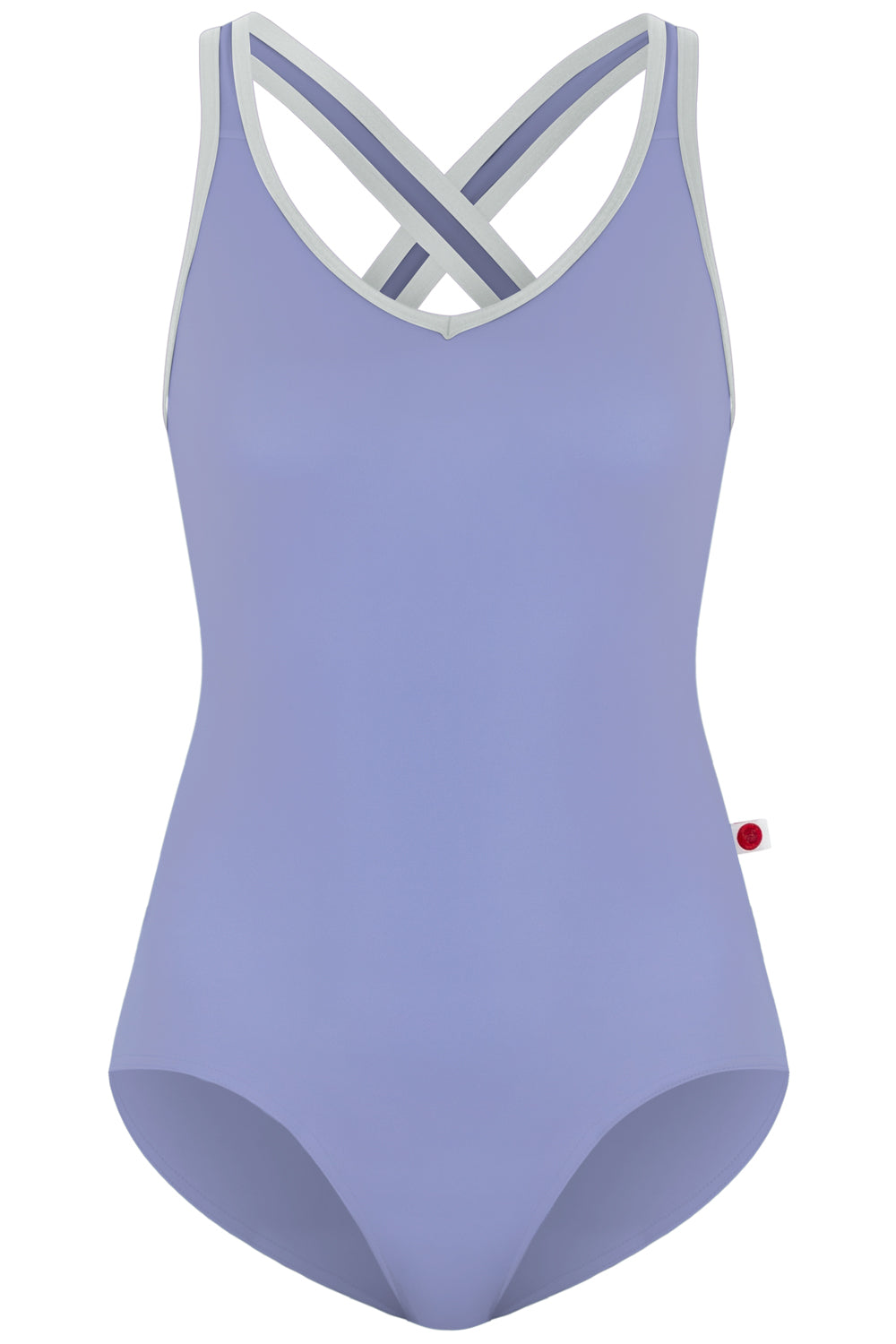 This sporty SONOYA leotard has a modified v-neckline and one inch criss-cross straps.